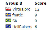 fnatic赢下下半场手枪局后将比赛的局势掌握在了自己手中,虽然VP一度将比分迫近,但fnatic还是以16-13的比分结束了这场比赛,确保了小组第二的位置,fnatic与SK积分相同,由于彼此交手记录中战绩较好(16-5,9-16)而排名第二。