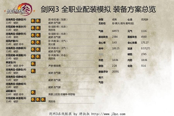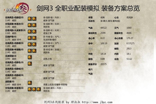 这一套是平民流配装,PVE装备主要带了副本,侠义,声望散件,获取比较简单,不是很着急的话都可以拿到手。五彩石还是以攻击为核心,一属性元气,三属性攻击。