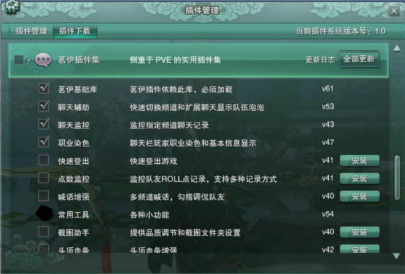 茗伊插件功能强大,相对应的也非常占用系统资源,这些不安装的插件里,比较有争议的有快速登出、头顶血条、字体管理、弧形血条、聊天记录。