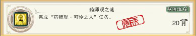 在战乱·天策药师观里找到起始NPC“墨老丁”,完成一系列任务后即可获得该成就。