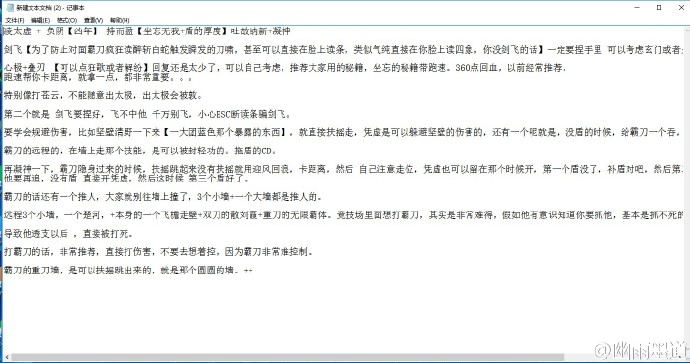 第五张图:我总结的剑纯打霸刀技巧,看得懂就看吧。。。还是推荐看视频。。。