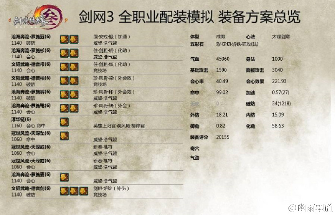 本次为大家带来四种配装思路,基本理念就是搭配一个PVE装备,洛阳声望的项链或者腰椎,这边要跟大家说一下。。。这声望清完是只有中立一半的,上次说错了,不好意思,然后就是1160的暗器,跟上赛季的子用藏一样,提高了品质,还有副本的会命腰椎,都是不错的选择,这里配的属性一般是40会心+35破防左右,大家假如觉得高破防比较舒服的话,可以直接把衣服换成JJC的,我个人是觉得JJC高会打起来比较舒服,不过都可以,看个人喜好,然后还有一张图是我总结的剑纯打霸刀的技巧,大家可以看看,因为最近很多人在问。