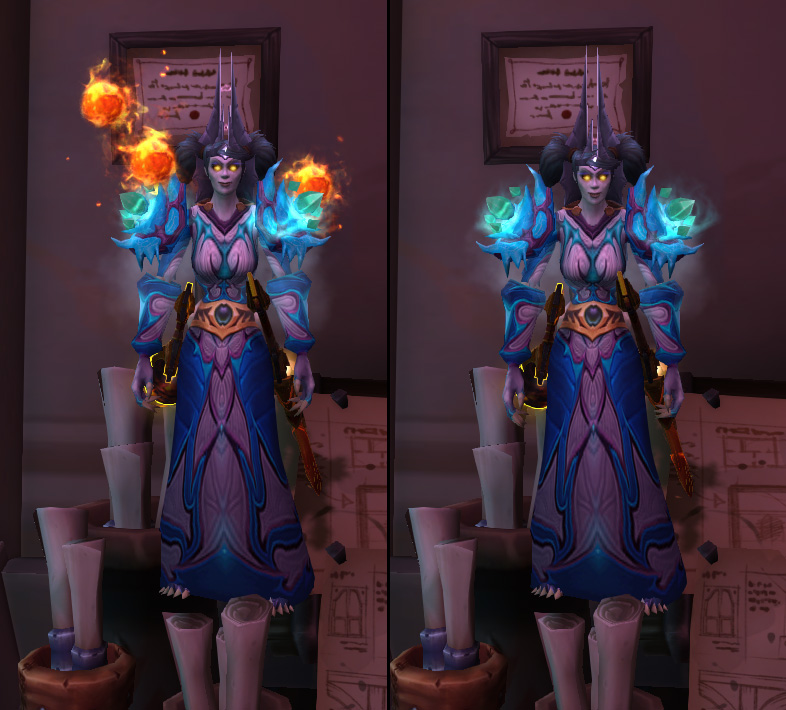 火法的神器外观的浮动火焰宝珠效果可以隐藏掉了,跟法师职业大厅(80,60)附近的女法师对话可以隐藏掉。