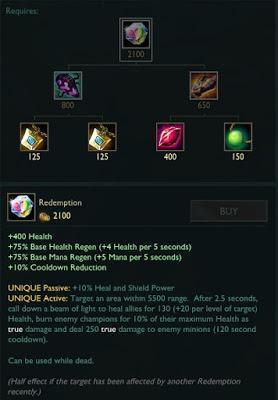 唯一主动:指定一个5500范围内的区域,2.5秒後,释放一道光芒治疗该区域内友军130(+20x目标等级)的生命值,並且点燃敌方英雄造成他们10%最大生命值的真实伤害,对敌方小兵造成250真实伤害。该主动效果在死亡时也能施放。(冷却时间120秒)