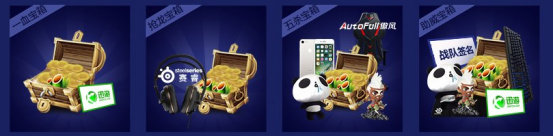 除了精彩的赛事,熊猫直播还给各位观看直播的观众老爷们准备了丰富的礼品。比赛过程中出现一血,抢龙,直播屏幕内会掉落宝箱,登录用户点击宝箱即可参加抽奖!奖品有AutoFull傲风提供的电竞椅、XunYou迅游提供的迅游会员、Steelseries赛睿提供的耳机等大礼!