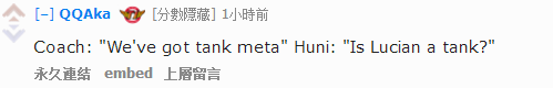 “不,Huni。卢锡安不是坦克。”