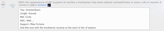 随着女枪辅助在世界赛的登场,每个位置都有至少一个ADC出现过了!