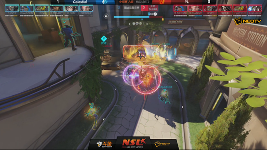 两只战队第二场比赛来到了大家熟悉的奴巴尼。YL先行进攻选择了猩猩源氏,团战猩猩跳二楼牵扯对面安娜麦克雷,地面乘机团灭对面一波捅穿A点。之后趁CL战队集结慢了一点将车顺利推过死亡巴士。进攻方源氏发挥出色连续团灭对面顺利到达B点。但是在B点拱门处,进攻方受到防守方强力狙击连续被团灭几波。关键时刻防守方小美走位失误,绕后差点被死神单杀导致团队被团灭,进攻方乘机将车推到终点。