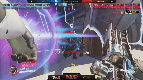 加时赛,VG战队先防守选择死神麦克雷体系,JHYX战队在时间不利的情况下,毛妹单骑救主连续单杀对面三人,将车推到B点。攻防互换,防守方拿出了猪来针对对面的源氏,进攻方则选择了源氏死神。一开战源氏找到防守方安娜先行击杀,Diya的死神则强行carry瞬间击杀对面数人将车推过B点。恭喜VG战队以大比分2:0战胜JHYX红队,拿到8强最后一张门票。