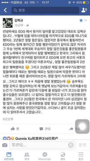 北京时间10月31日,EDG战队ADC选手Deft在社交媒体上表示:德杯将是他最后在EDG的比赛,之后将会离开。