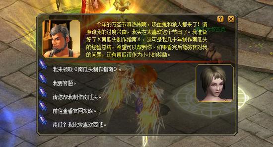 1、10月31日至11月13日万圣节期间, 向卡诺萨城的南瓜大叔杰克(353,380)领取《南瓜头制作指南》,阅读之后回答对他的提问,即可获得南瓜币作为奖励; 2、在南瓜大叔杰克的指点下收集齐所有材料并上交,他将帮助冒险者制作个性南瓜头; 3、使用南瓜币可在万圣节兑奖处巨型南瓜处的南瓜币礼品商店中兑换珍奇礼品。 |