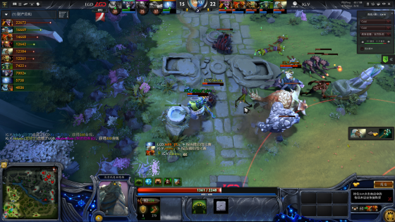 首局比赛IG.V选出小狗跟修补匠双核来对抗LGD拍拍加剃刀,前期由于无法限制小狗发育而选择了放养,这一举动让小狗非常舒服的完成线野双收很快便出山跟团。尽管LGD有冰龙的存在能多少克制一下小狗的输出,然而被冰箱的队友成为了IG.V另一个核心修补匠的靶子,物理跟法系双核心完美配合IG.V轻松拿到了首局的胜利。