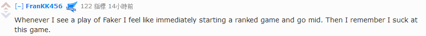 每当我看到Faker的操作后,我都会立马开一把排位然后选中路。然后我会发现自己真的是个菜鸡。