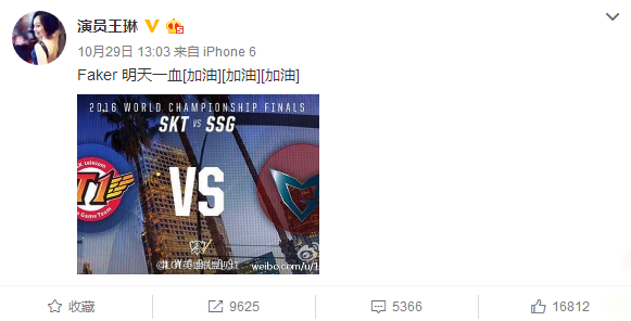 起初是这样的,英雄联盟2016世界总决赛前一天,雪姨扮演者王琳发布微博,为Faker加油打气。