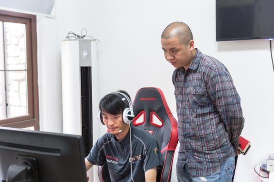 大师:他就是一个宅男,比如早上起来我说走出去吃饭,他是那种打死不出门的。就是宅着,训练完了就听队友总结,就排天梯,一边排路人一边看电影,一直循环到睡觉。