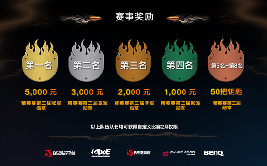 前8名队伍队长均可获得2个月B5对战平台自定义比赛权限。