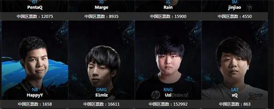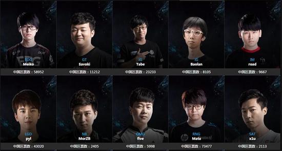 辅助则是Mata 领先Meiko两万票暂时位列第一。