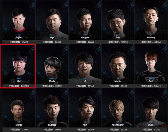 虽然在S6上战绩不佳,但作为LPL代表的RNG战队选手得票依然极多,最需要一提的便是夏季赛才加盟RNG的ADC狂小狗Uzi。截止11月2日上午10时,Uzi已得170多万票,粗略一算,其他所有ADC选手的票数加在一起,似乎也不及Uzi一人之多。