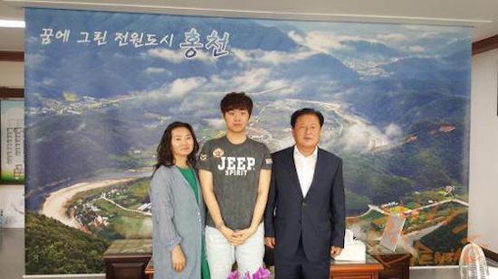 Bang与他的母亲、洪川郡郡守合照Bang与他的母亲、洪川郡郡守合照报道中还提到了Bang作为家里的次子,从小就在洪川生活长大,从洪川小学、初中毕业后,在洪川高中就读1年级时被Najin Shield选中走上职业选手的道路。他的父亲배연길过去曾在韩国少数党民主劳动党担任江原道地方组织委员长,目前在位于原州的汽车部件供应商Mando机械就职,母亲则在洪川经营一家名为Midamoa的美容院。