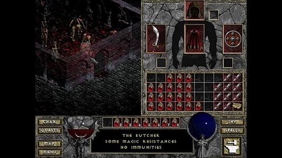 暗黑破坏神1游戏截图。图片来源:网络这个想法直到很多年后才实现。在成立Condor公司并开始接订单做游戏后,Brevik和团队人员得到了一个机会与Silicon & Synapse公司的人见面,这促成了暗黑的诞生。“当时Condor和Silicon & Synapse都在为SNES和Sega Genesis公司做游戏盒,” Brevik解释道,“我们团队那时候正在开发一款叫Justice League Task Force的游戏,那是一款格斗类游戏,很像《街头霸王》,只不过人物都是DC的超级英雄。所以我们参加了在拉斯维加斯举办的CES展会,那时候E3公司都还没有成立。视频游戏只有很小的一块展位,但我们向那些有意向的买家奋力兜售我们的产品。”