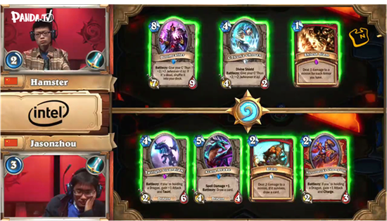 《炉石传说》世锦赛1/4决赛在两位中国选手——熊猫直播平台的主播Jasonzhou和被称为“圣光信仰”的哈姆士郎之间进行。很令中国玩家兴奋但是也很纠结的是,Jasonzhou和哈姆士郎只能出线一人,最终会有一位中国选手在内战中被淘汰。