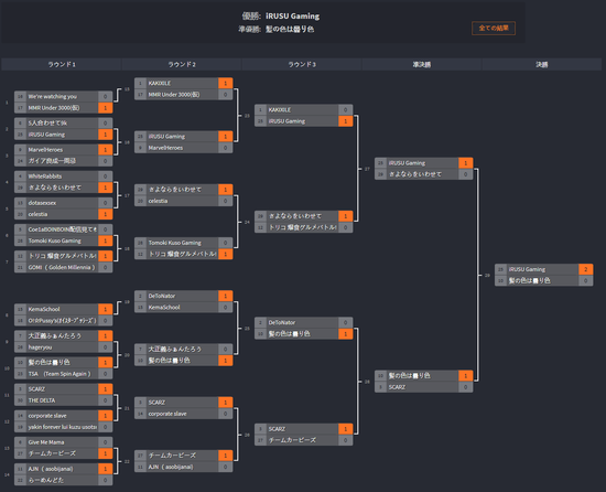 参加过TI6东南亚赛区预选赛的日本职业战队DeToNator战队也参加了本次比赛,首轮轮空的情况下在第二轮就输给了本次比赛的亚军髪の色は曇り色战队,另外一支轮空战队KAKIXILE第二轮遭遇IRUSU Gaming的狙击不幸落败,还有一些首轮就被淘汰的职业队伍Team Spin Again等等,这次日本DOTA2牡蛎杯也算是冷门无数。