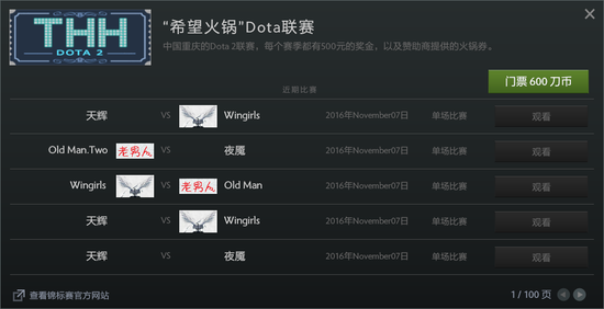 PS:小编在DOTA2客户端中查找该比赛,没有找到该比赛却找到了一个重庆希望火锅Dota联赛,噗~~~~~
