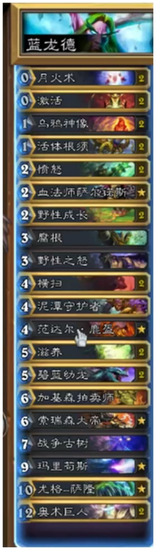 会长用了奇迹贼和蓝龙德两套卡组,虽然小德在嘉年华的表现不太好,omegazero的德鲁伊被四关了让人心疼,不过在月初的天梯,会长依旧吐血推荐这套卡组。