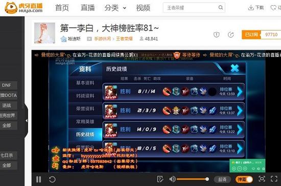 哈迪斯擅长玩的英雄是李白,同时对王者荣耀中很多英雄都有自己独到的见解,他的李白大神胜率榜81,名列前茅。当天直播中,哈迪斯全程直播全部选用英雄人物李白,大部分战局都是MVP,大杀特杀,越塔强杀,十步秒一人,千里不留行,看的粉丝们满屏弹幕狂刷666。