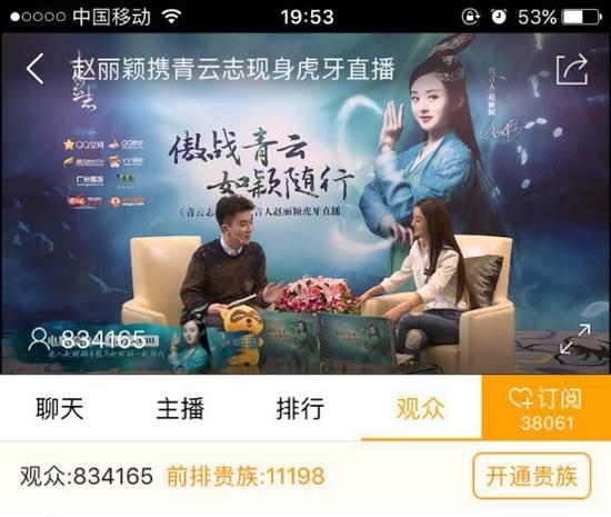 【赵丽颖空降虎牙直播 代言《青云志》人气爆棚】