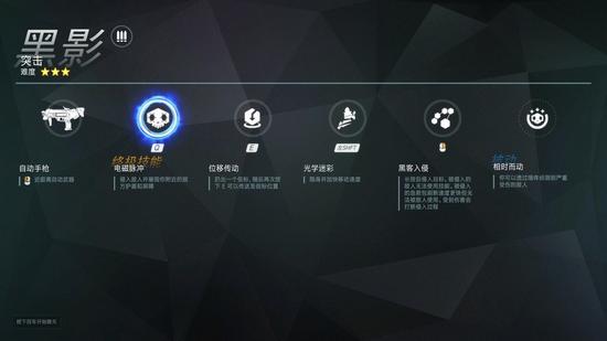 黑影定位突击英雄,但是本质上和猎空源氏属于一类,都是脆皮收割以及骚扰。合理利用传送和隐身技能能给对手带来重大打击,60发弹夹虽然威力小,但是不一定要打死你,完全可以给你造成重创之后由队友来收割。所以玩黑影不要在乎输出,要以骚扰为主。