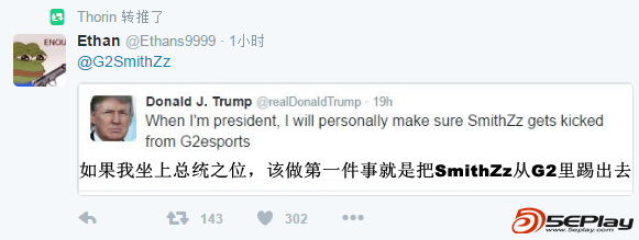 在刚刚结束的美国大选中Donald Trump以微弱优势击败希拉里克林顿坐上了美利坚第四十五任总统之位,这在Twitter上引起了一大片风波,身在CSGO圈内的这些选手与解说又会有什么看法呢?