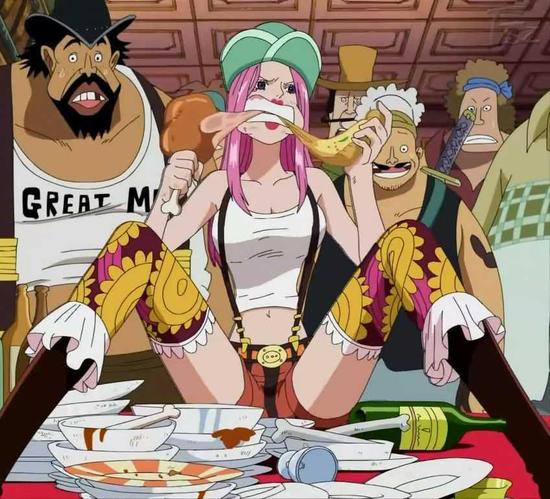乔艾莉·波妮,是邦妮海贼团船长,也是“时间果实”能力者,又称为“大胃王”,有着粉红色长直发、涂口红,头戴荷绿色帽子,凉快的牛仔装,白色露脐上衣,背带紧身短裤,性格粗鲁傲慢,连吃相也相当难看。