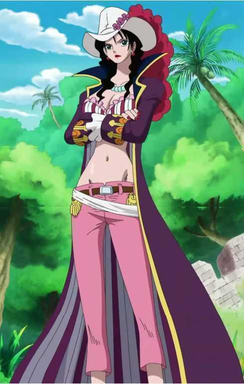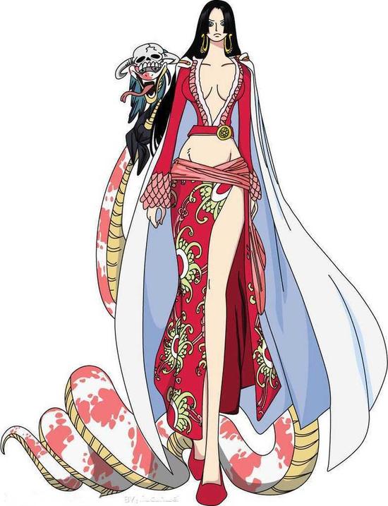 波雅·汉库克,海贼女帝、蛇姬,是超人系“甜甜果实”能力者,而且是数百万人之中只有一人才有的“霸王色的霸气”,也是王下七武海中唯一的女性,同时也被认为是世界第一的绝世美女。海贼女帝拥有一头乌黑的长发,发型为姬发式,深蓝色的双眸,戴着一对蛇型耳环,高挑身材且美貌出众,背后有名为“飞龙之蹄”的烙印。