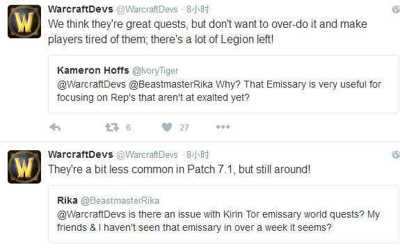 暴雪:没错他们是很棒的任务!但是我们不想让玩家一直做那些甚至会让玩家对任务感到疲倦。毕竟还有很多军团存在啊。