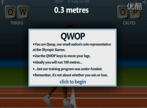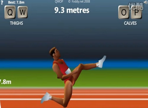 这名解说名为老E,他玩的是一款名叫《QWOP》的跑步游戏,你需要的是用Q、W键控制运动员的大腿,以及用O、P键控制他的小腿。游戏看似简单,但玩的时候,如果你没学过人体结构,那么就会吃很大的亏。视频中的解说就是这样,你看,虽然只有4个案件,但他将游戏玩得比《血源》还难,这叫人情何以堪。其中一次好不容易走了7、8米,又因为按错而后退,最后以失败告终。然后老E一句对游戏的感言亮了,他说:“这游戏真是让我的双手蠢蠢欲动,蛋部略为疼痛,膝盖一阵骚动,胡子上下扭动”,如此押韵,小编也是不能淡定了。最后提一下,老E拿下的最长距离是9.3米。