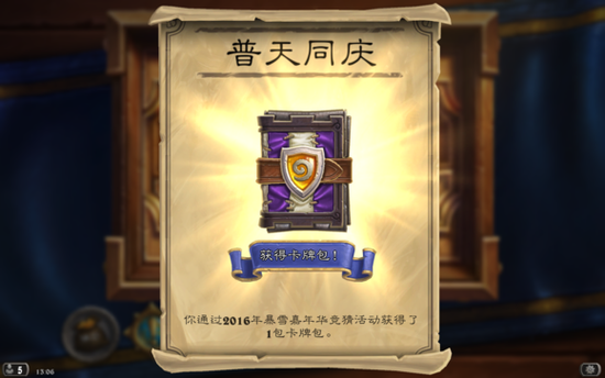 今天发放了嘉年华竞猜卡包,根据你竞猜的选手获胜数发放冠军试炼卡包。
