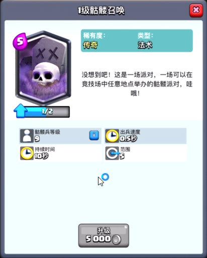 皇室战争最近骷髅召唤越来越火了,在刚出不几天的时候,出于集卡的选择,花了4w金币买了一张,然后直降500杯开始试验各种天梯卡组的爬坡,在这周才刚滚回4000杯,并且最高打到了4150左右。
