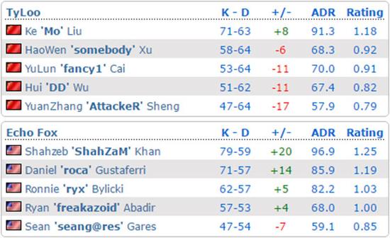第24局fancy1赢下1v2的残局之后重置对手经济,对方被迫eco,这也给了TyLoo喘息的机会,比分逐渐被迫近,Echo Fox的心态反而出现了变化,他们开始出现失误,TyLoo将比分追平。在第29局,SOMEBODY的一次关键性绕后打掉对方在B洞内的两名队员,又在和Freakazoid的1v1对话中取胜,TyLoo拿到赛点,最终局全场发挥最佳的mo在A区用AWP完成四杀,帮助TyLoo以16-14的比分取胜,实现大逆转。