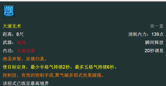 纯阳宫控制技能多以这两类为主,能够被眩晕和击倒/僵直覆盖。