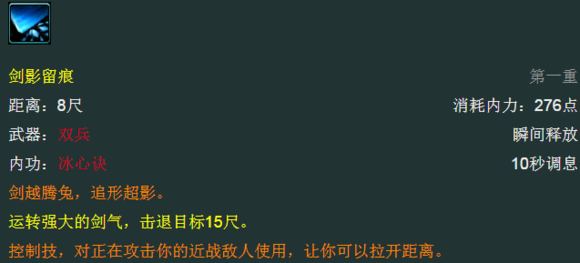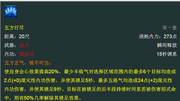 由于丐帮的所有技能都附带僵直效果,这里把很多人都忽略的天策大招——破重围贴出来作为举例技能。