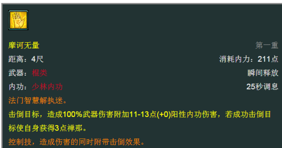 基本就是字面意义的解释:技能没有说明的是摩诃无量击倒的持续时间是3秒