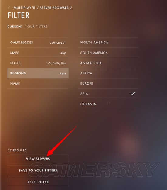 4 这里可以先按SAVE TO YOUR FLTERS,方便下次游戏,最后按view servers