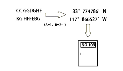将这段留言语音的首字母分别提取出来便组成了“CC GGDGHF KG HFFEBG”,再利用A=1,B=2的算法将字母数字化后得到的数列是“33 774786 117 866527”,玩家在地图中惊喜的发现北纬33°774786’,西经117°866527’正好是位于圣安娜(Santa Ana)的一栋门牌号为109的建筑。没错,109这个熟悉的数字再次出现,也表明着谜底即将揭晓。