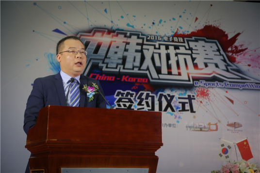 签约仪式上,体育信息中心主任丁东首先致辞,介绍了中国电子竞技运动发展情况和体育信息中心的设想。丁东讲到:“自2003年国家体育总局明确电子竞技为我国正式开展的体育运动项目以来,电子竞技运动取得长足进步,2014年国务院印发《关于加快发展体育产业促进体育消费》后,更是极大推动了电子竞技的发展。2016年中国电子竞技运动的赛事规模和参与人数进一步壮大,正成为蓬勃发展的朝阳产业,成为了世界电子竞技运动的中坚力量。更重要的是我国电子竞技健儿在世界舞台上勇创佳绩,在国际职业赛事中屡获殊荣,成为世界电子竞技强国。作为中国电子竞技运动的主管部门,国家体育总局体育信息中心一直致力于推动中国电子竞技运动健康规范发展。近年来中心与社会相关方面一道,采取多种措施,致力于构建完善赛事活动体系,并产生了在电子竞技强国之间开展官方的跨国电竞交流、互相促进提升的想法。正是在这一背景下,经过与韩国电子竞技协会的反复磋商,在耀宇文化公司的积极配合下,我们联手推出了目前中韩两国官方电子竞技组织唯一认可的国际性电竞赛事----中韩电子竞技对抗赛。相信这一赛事将充分展示中韩两国电竞选手实力,提升中韩两国电竞运动水平,为广大电竞爱好者奉献激烈精彩的赛事,中韩对抗赛将成为中韩交流学习的新开端!”