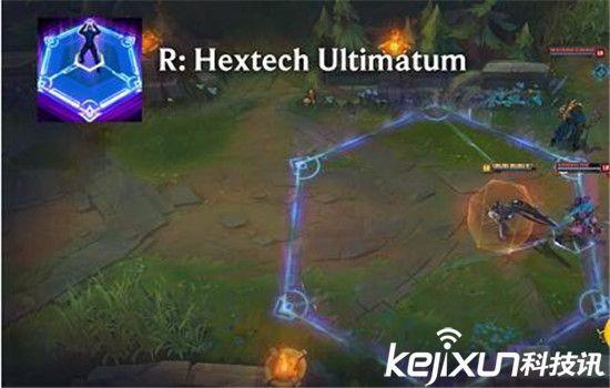 皇子大招不同的是会震开目标以外的敌人,目标无法离开这个区域。区域持续一段时间或卡密离开了这个区域。在区域内卡蜜的攻击附带额外ap伤害。
