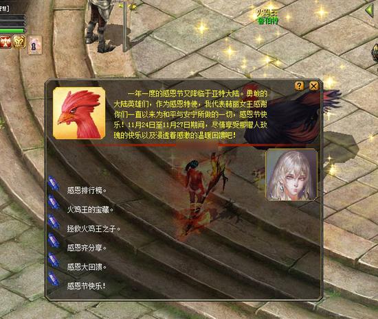 名称:火鸡王 坐标:卡诺萨城(344,399) 作用:活动介绍、传送