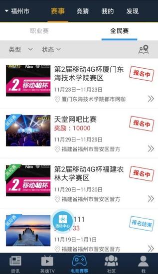 下载掌上英魂之刃,点击电竞赛事栏目,在“赛事-全民赛”中即可看到在你附近的电竞比赛