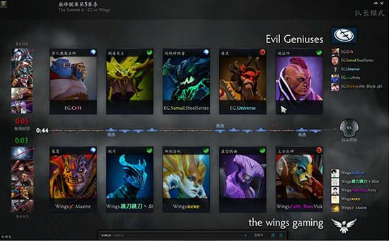 36分钟下路开团,Wings大招齐上干掉尸王,又杀掉剑圣,一波推进。碍于水人带线,只能撤回。双方都有些小心翼翼,EG伺机击杀斧王,斧王秒速买活。为失败埋下了隐患。41分钟EG下路上高,斧王跳上被集火,80秒不能买活。Wings高地遭团灭,打出GG。惨遭淘汰。