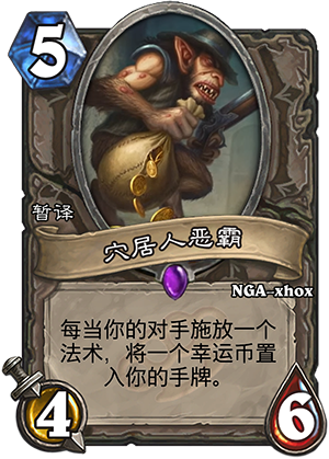 5费46身材,属于禁魔的卡一类,虽然幸运币的作用对盗贼来说是不小,但5费取消盗贼有蓝龙,而且对比4费54的盗墓匪贼,这张卡没那么多优势。